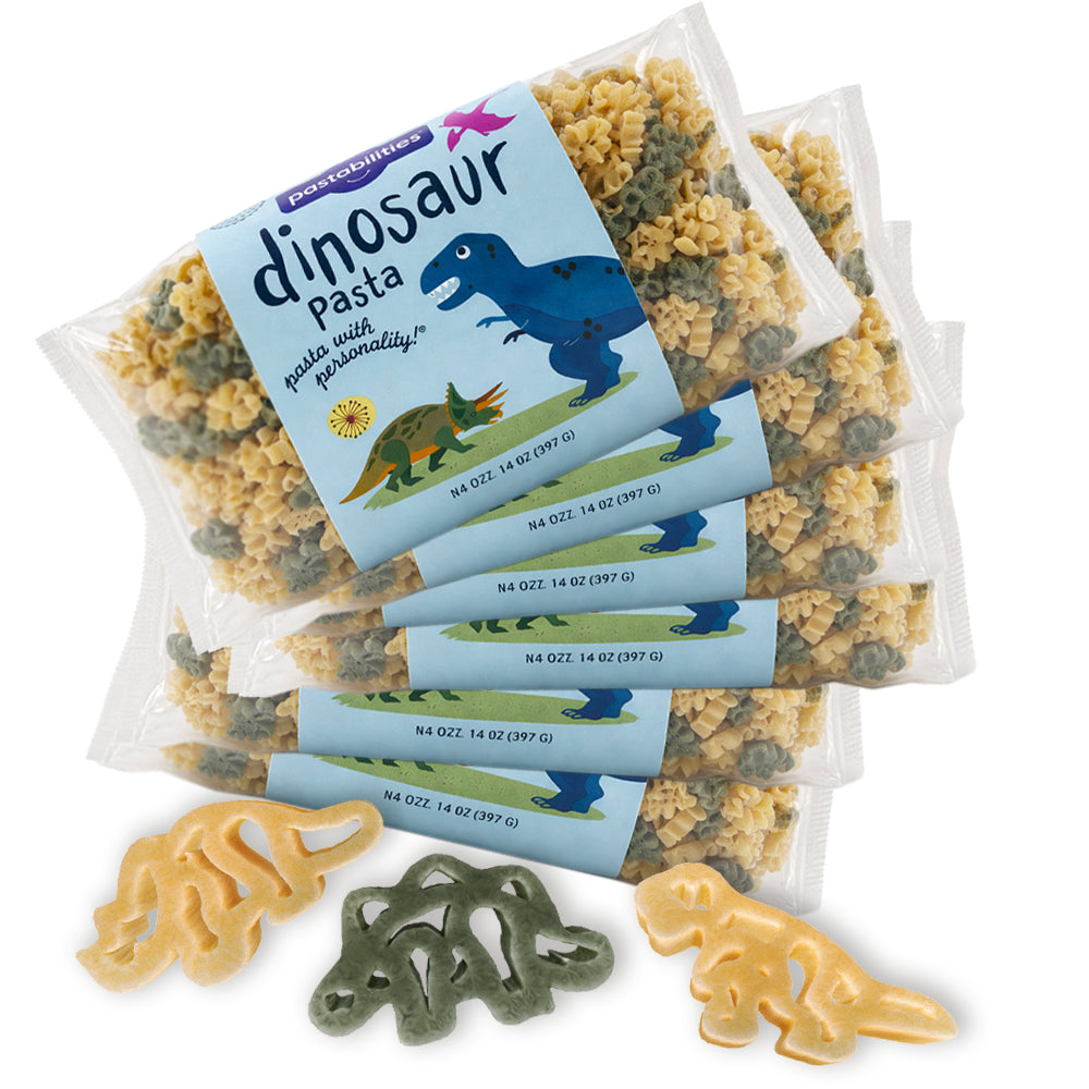 - Includes 6 bags of Dinosaur Pasta (14 oz. each)