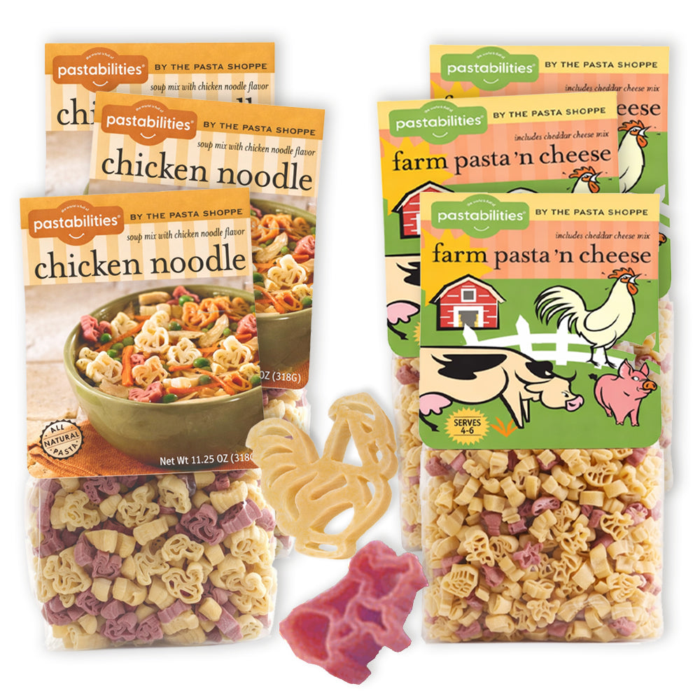 - Includes 6 bags total: 3 packages of Chicken Noodle Soup (11.25 oz each), and 2 packages of Farm Pasta ‘n Cheese (12 oz. each)