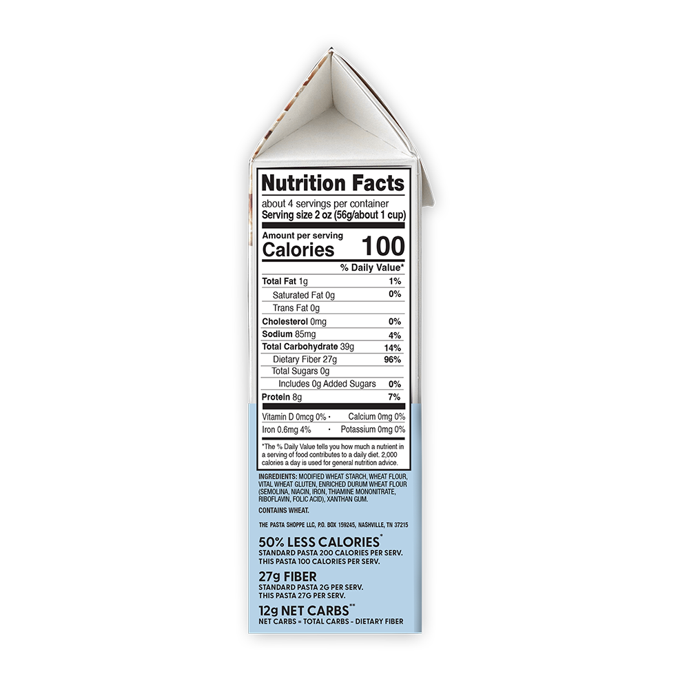 • Includes 6 boxes of Lower Cal Pasta: 3 boxes of Lower Cal Ruffles and 3 boxes of Lower Cal Penne (8 oz. each) plus 2 pouches of our Pastably the BEST sauce ever!