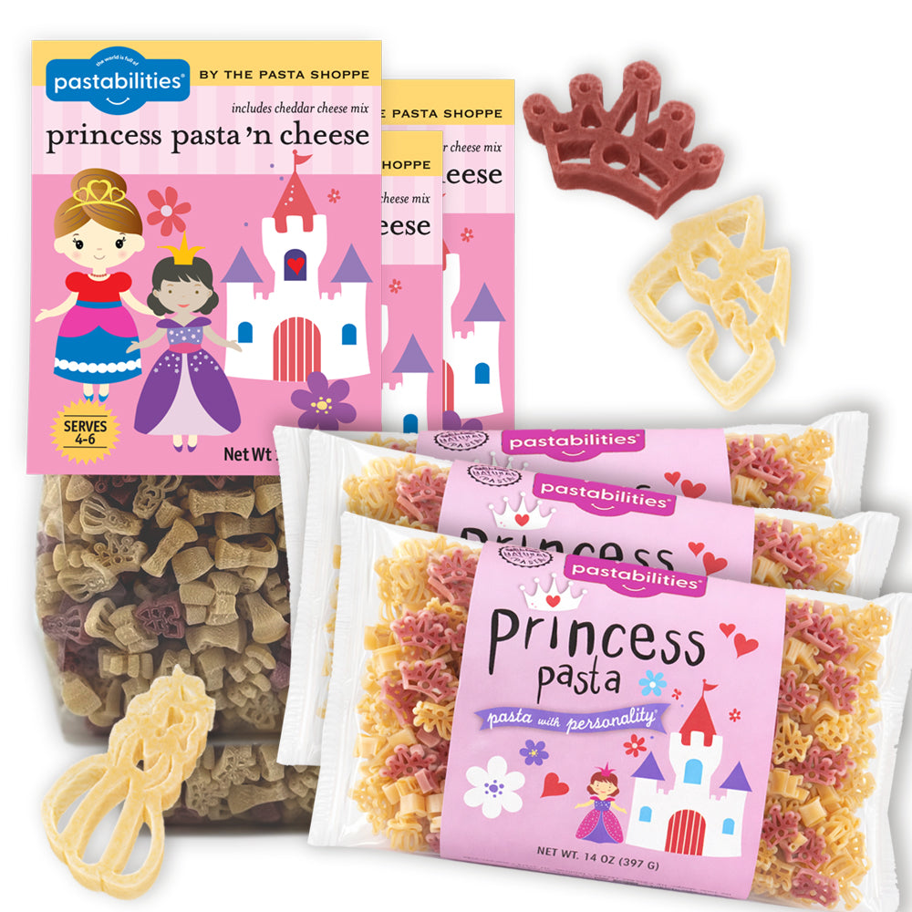 Each product in this bundle is crafted with the same care and quality that defines Pastabilities. Our princess-shaped pasta is made using time-honored Italian techniques for beautiful texture and flavor, while our mac and cheese is created with simple, wholesome ingredients families can feel good about serving. The Princess Deluxe Bundle is perfect for birthday parties, special surprises, picky eaters, and imaginative play—bringing a little sparkle, comfort, and joy to every bowl.
