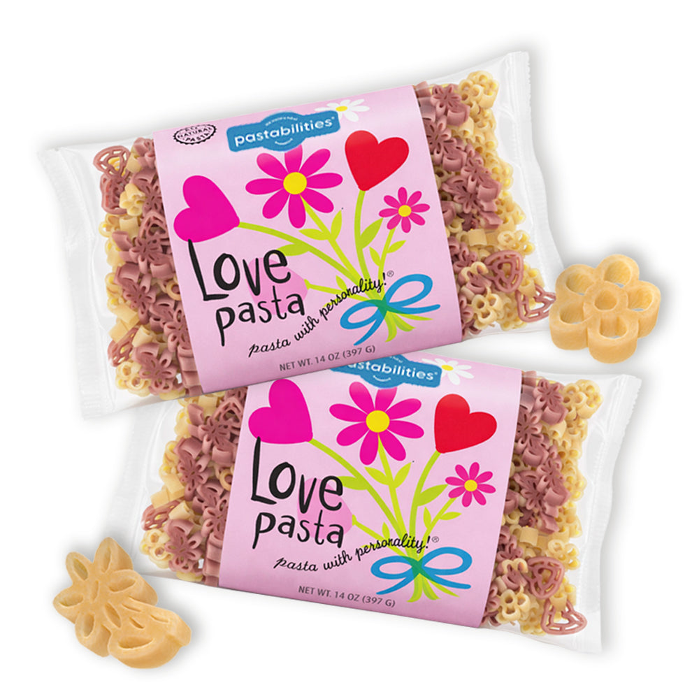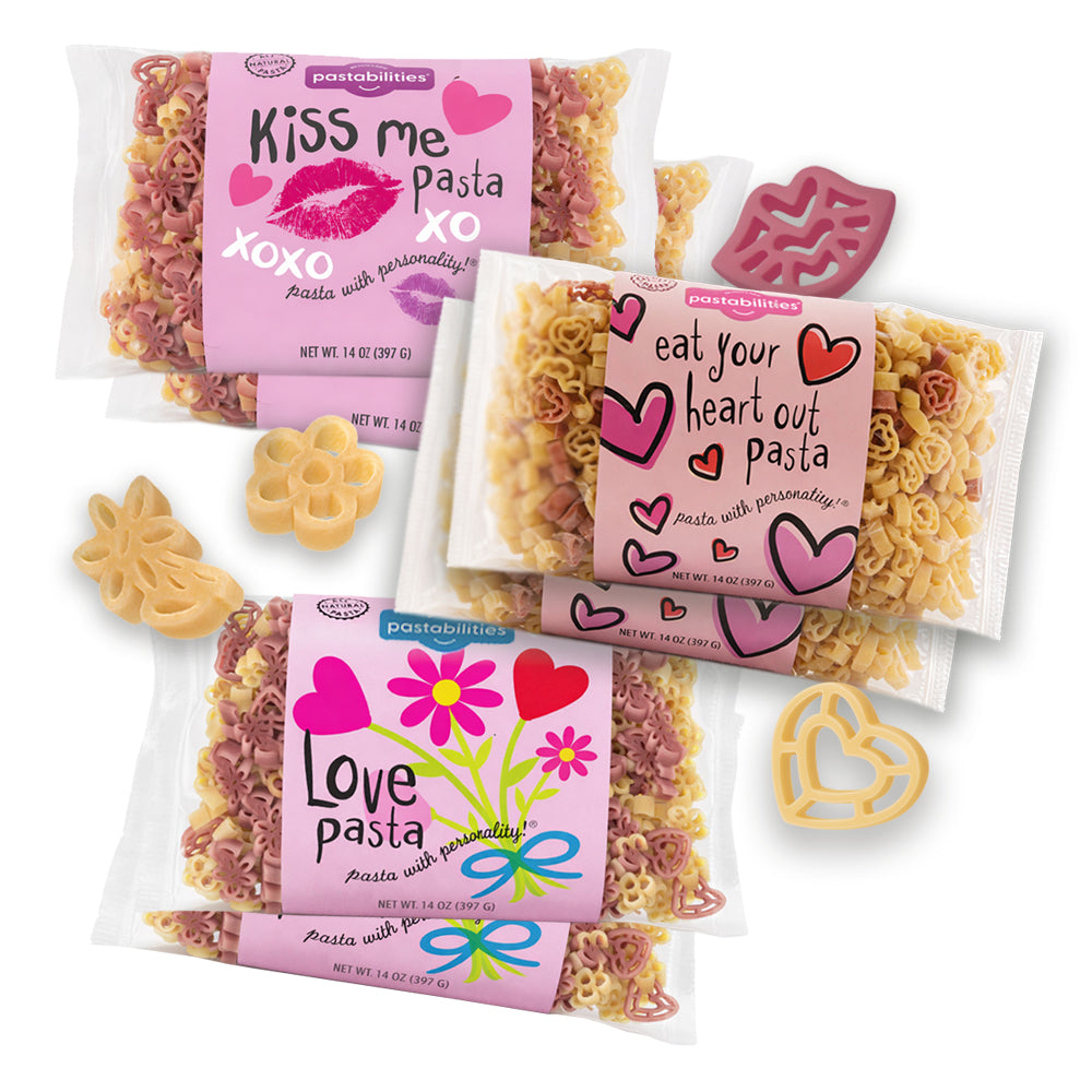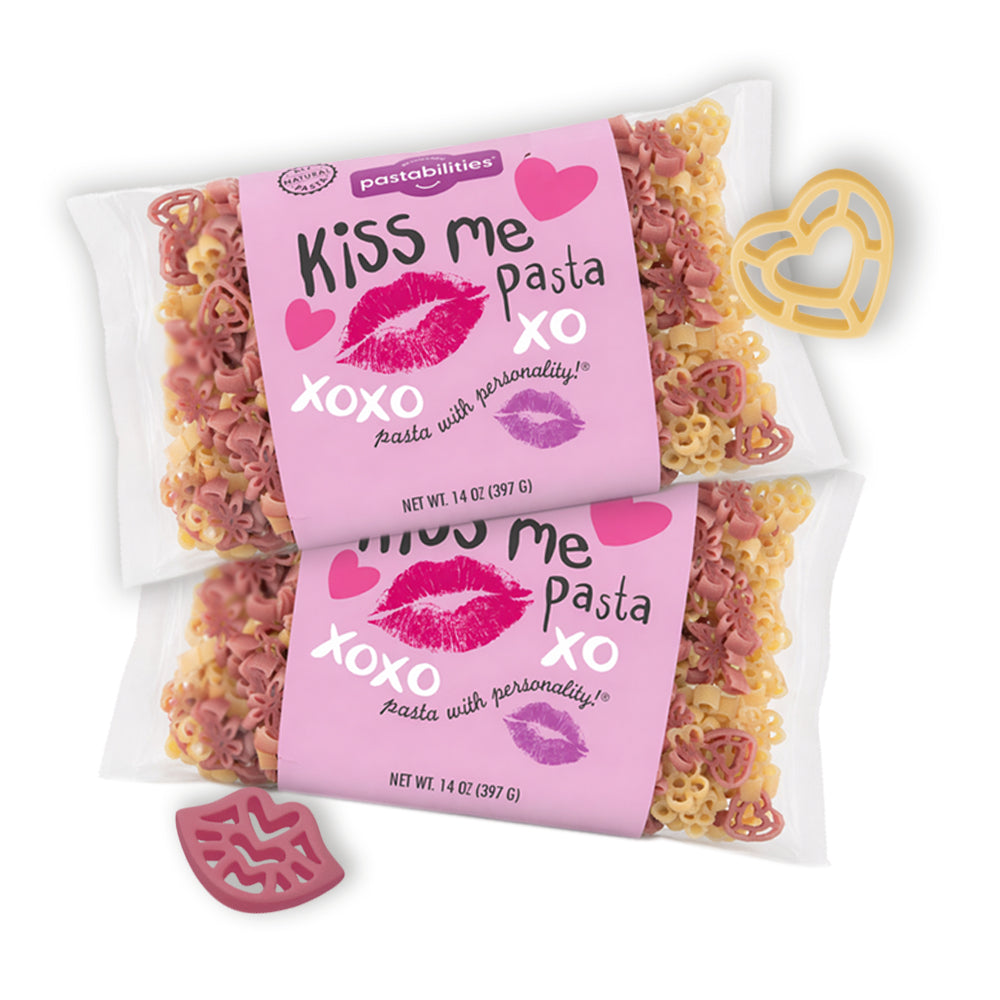 - Includes 6 bags total: 2 bags of Heart Pasta, 2 bags of Love Pasta, and 2 bags of Kiss Me Pasta (14 oz. each)